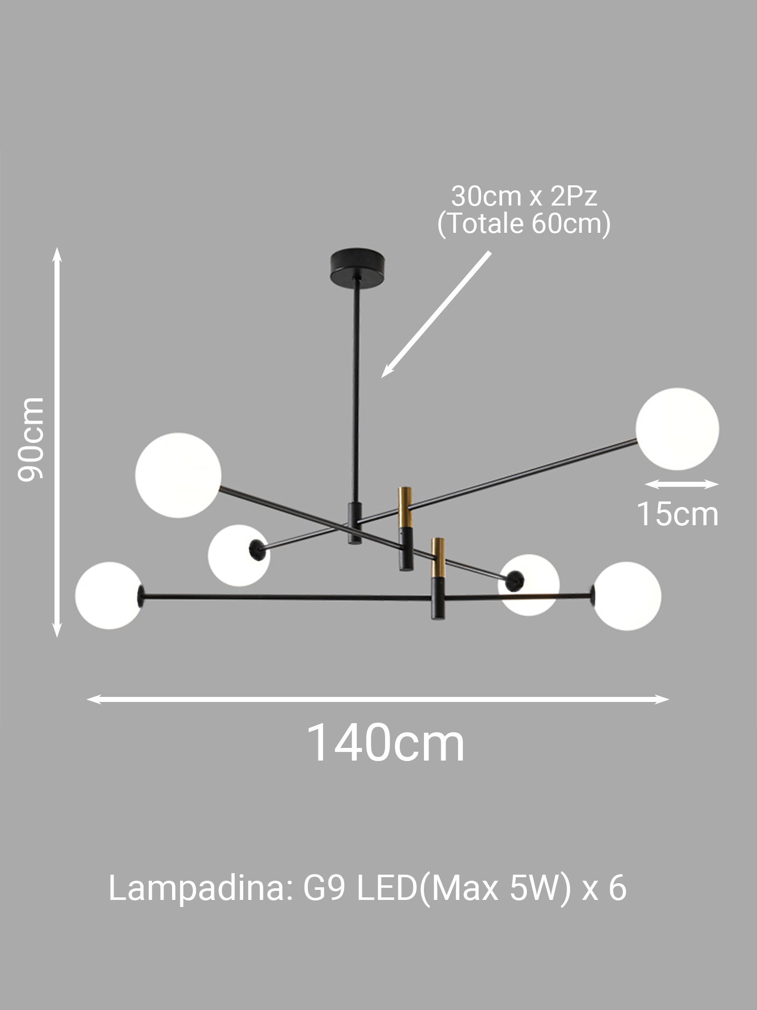 Illuminazione Versatile: Dotato di sei portalampade G9 (max 5w ciascuno), questo lampadario offre un'illuminazione ampia e distribuita uniformemente. Perfetto per creare un'atmosfera accogliente in qualsiasi stanza.