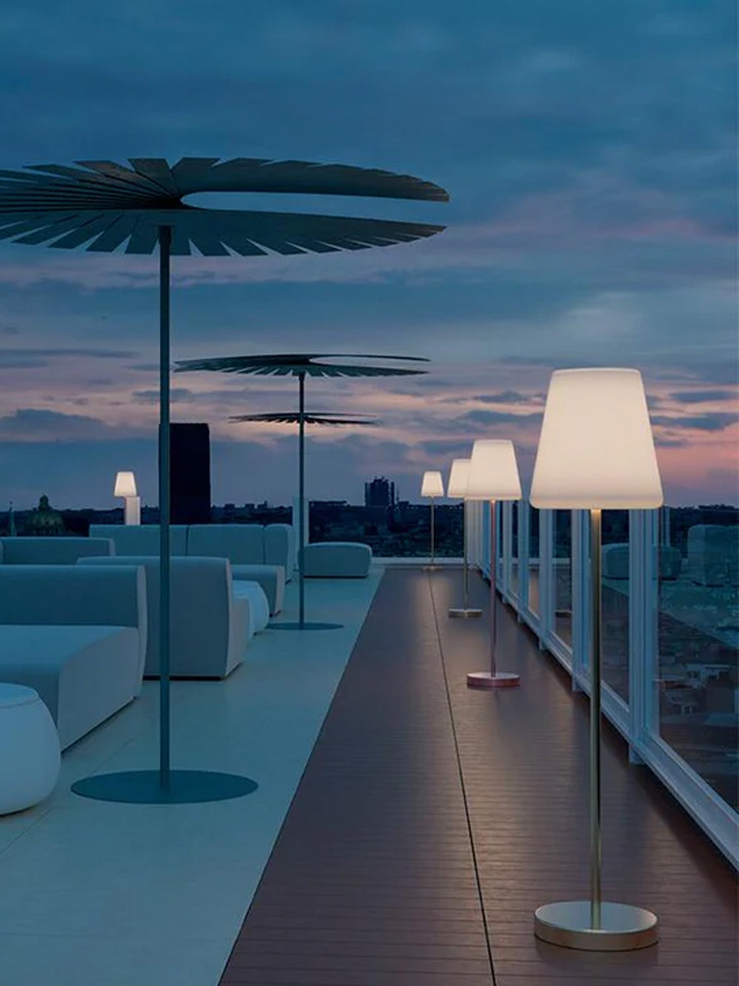 La lampada da terra Lola Slim è disponibile con carica solare e batteria ricaricabile, ha un'emissione luminosa eccezionale.
