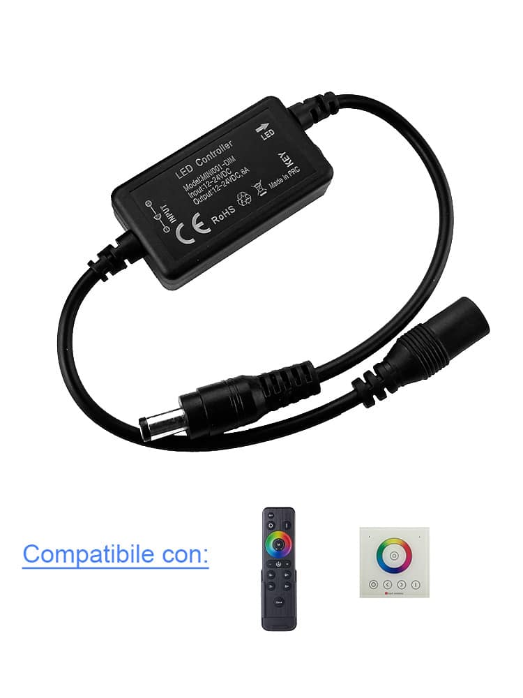 FUNZIONI: Utilizzato con un Telecomando HX-RFBK-RGB-2.4G LED REMOTE CONTROL o HX-HWP86-RGB-2.4G WALL PANEL CONTROL, idoneo puoi comandare una Led da remoto per le seguenti funzioni: Accensione e Spegnimento / Regolazione della Luminosità / Cambia Kelvin / Colori.