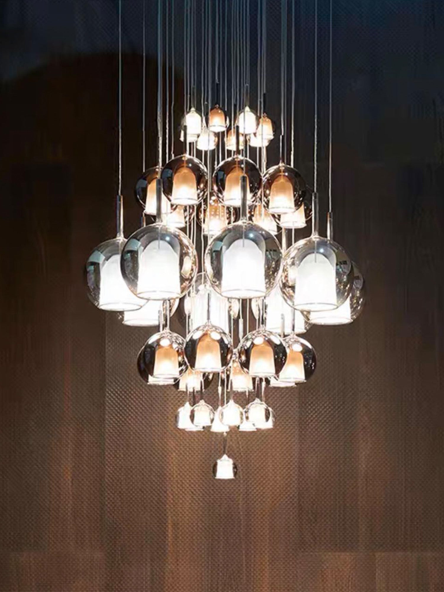 La sfera dama è una lampada pensata per illuminare con stile il bancone del bar o il tavolo del soggiorno o della sala da pranzo. Per la sfera dama è consigliabile montare lampadine in linea con lo stile della lampada, ossia modelli a filamento che producono una luce di colore caldo in linea con lo stile del lampadario per ottenere un ambiente soft e caloroso. Sfera dama è un'originale lampada a sospensione sferica che crea un'atmosfera calda che attira l'attenzione in tutto l'ambiente interno per la sua brillantezza e particolarità.
